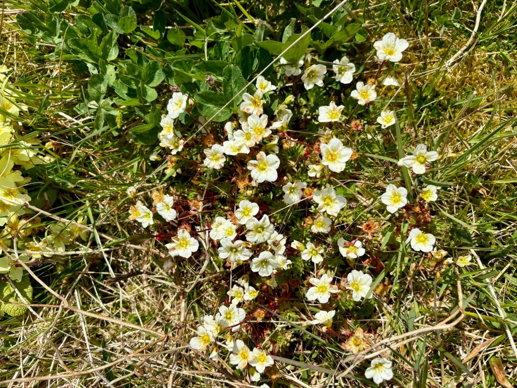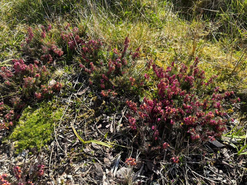 The heathers on the bank are blooming, as are the saxifrage and the primroses. It’s especially noticeable as we haven’t planted many flowering plants, so the little pops of colour on the banks are particularly welcome.