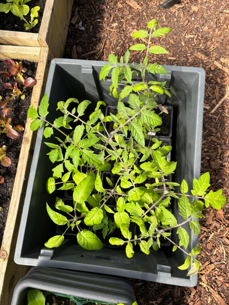This weekend saw the moving in of the tomatoes, of which I of course have grown far too many. I have no idea where they’re all going to go!