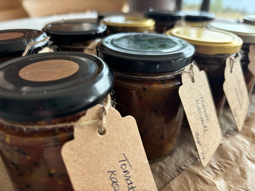 I also made the first batch of our favourite spiced tomato chutney, tomato kasundi, this afternoon. It feels as if we’re on the approach to winter when the chutney making for Christmas starts!