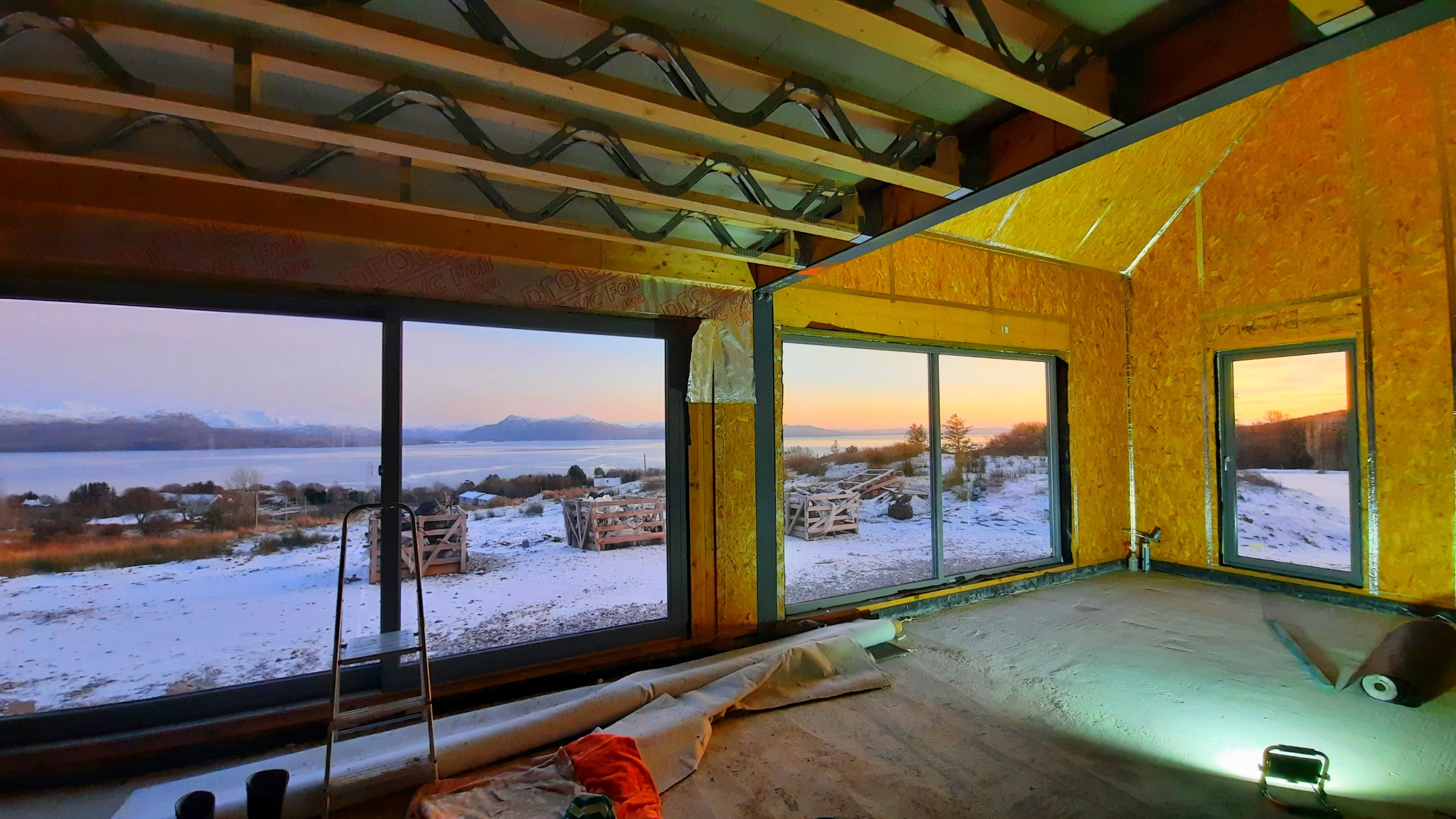 As dusk approached we packed up the last roll of insulating foil and I turned to take a photo of the last shreds of the sunset.