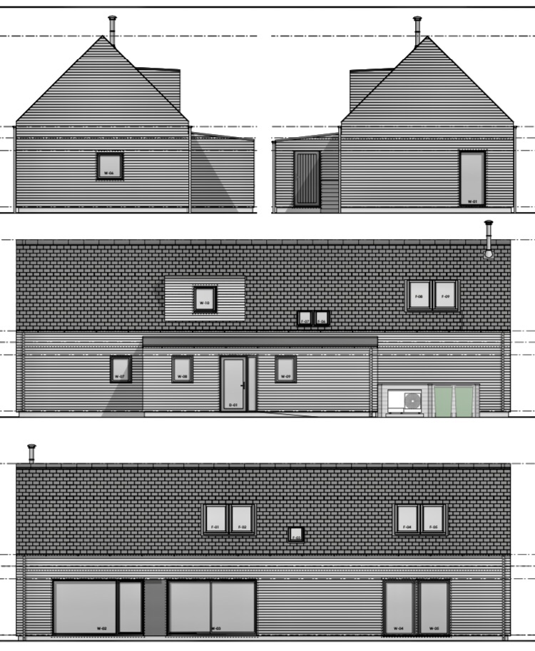 According to the design statement from the architects, we’re building a “subtle neo-traditional Scottish dwelling that alludes strongly to the longhouse design whilst incorporating a modern, energy efficient interior”.